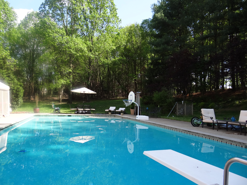 This richly-designed custom manor home is a private leisure sanctuary in a close-in Vienna, Virginia, location – minutes to major thoroughfares, Wolf Trap National Park for the Performing Arts, world-class shopping at Tysons Corner and renowned academic institutions. Sited on a hill within a natural bowl of evergreens and woodlands, this 5-acre gated property includes a lighted winding driveway beneath a treed canopy, 3-car attached garage and separate 2-car garage with second level storage area, a gentle stream running through the property, meandering paths for walking, bicycles, or all-terrain vehicle leisure activities, and a beautiful pool for swimming, diving, and other water sports.
