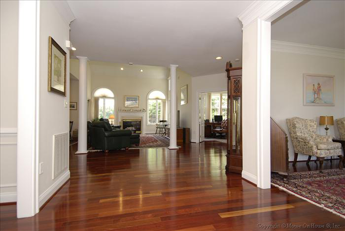 This richly-designed custom manor home is a private leisure sanctuary in a close-in Vienna, Virginia, location – minutes to major thoroughfares, Wolf Trap National Park for the Performing Arts, world-class shopping at Tysons Corner and renowned academic institutions. Sited on a hill within a natural bowl of evergreens and woodlands, this 5-acre gated property includes a lighted winding driveway beneath a treed canopy, 3-car attached garage and separate 2-car garage with second level storage area, a gentle stream running through the property, meandering paths for walking, bicycles, or all-terrain vehicle leisure activities, and a beautiful pool for swimming, diving, and other water sports.
