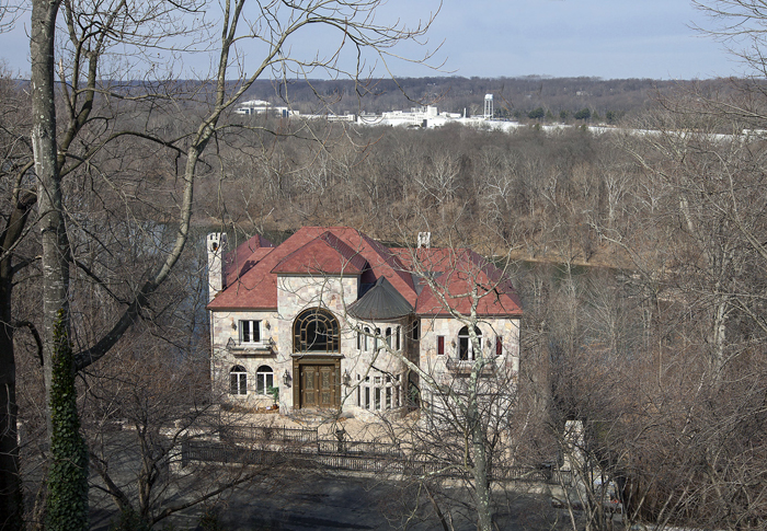 RIVERFRONT... LIVE HIGH! This extraordinary riverfront residence sits atop 1.2 acres of wooded terraced land in one of Northern Virginia's most prestigious neighborhoods. Enjoy breathtaking views of the Potomac River and Maryland countryside from expansive windows on all 4 levels. Newly constructed in 2008 on 3,800 cubic yards of foundation for strength, this magnificently unique home gives you privacy, spaciousness and elegance. Four levels, Castle stone, gourmet kitchen, gorgeous hardwoods, Travertine flooring, 7 bedrooms, each bath has 6-foot Jacuzzi tub, garages on 2 levels, glass-walled elevator, 5 fireplaces, indoor pool/spa/sauna... Sumptuous finishes, unique beauty, opulent entertaining!