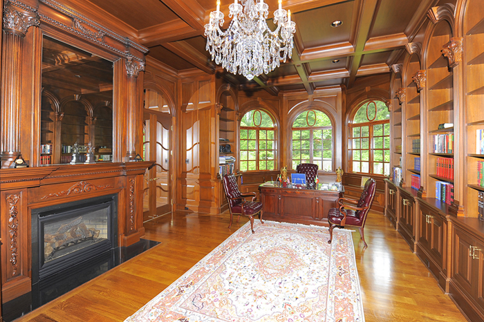 Five wooded acres and strikingly expansive living/entertaining spaces put this grand, 4-level home in a class of its own. 15,000+ square feet include 7 bedrooms, 7 full and 2 half baths, 2 lofts, 3 kitchens, and rooms and space galore! The main level radiates warmth from the gourmet kitchen at its heart through informal spaces of the family room, breakfast salon, solarium and cherry-hued deck stretching across the rear of the home. Meanwhile, the two-story foyer with its crystal chandelier and wrap-around upper hall centers the formal spaces which include an elegant living room/parlor, formal dining with built-ins, and library with adjoining den. The two upper levels include a master suite with loft, dual entry master bath with steam shower and elevated soaking tub, 5 additional bedrooms, separate apartment with entry from garage, and an additional loft. The lower level features massive bar, 2 recreation rooms, billiards and game rooms, 2 exercise rooms, kitchen, maid or au-pair suite and walk-out to pool deck. For indoor and outdoor living and entertaining, this home has all the space you need!